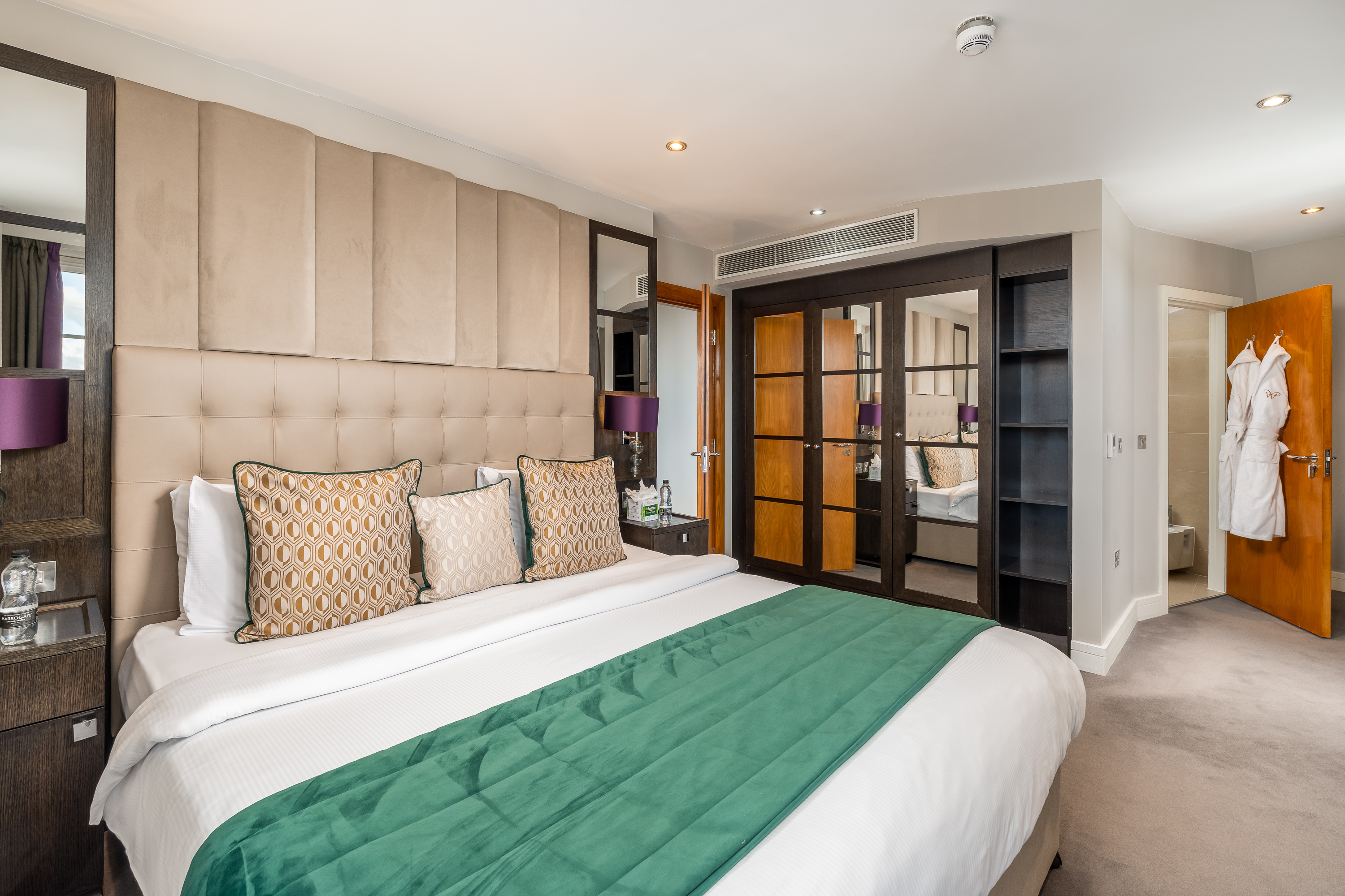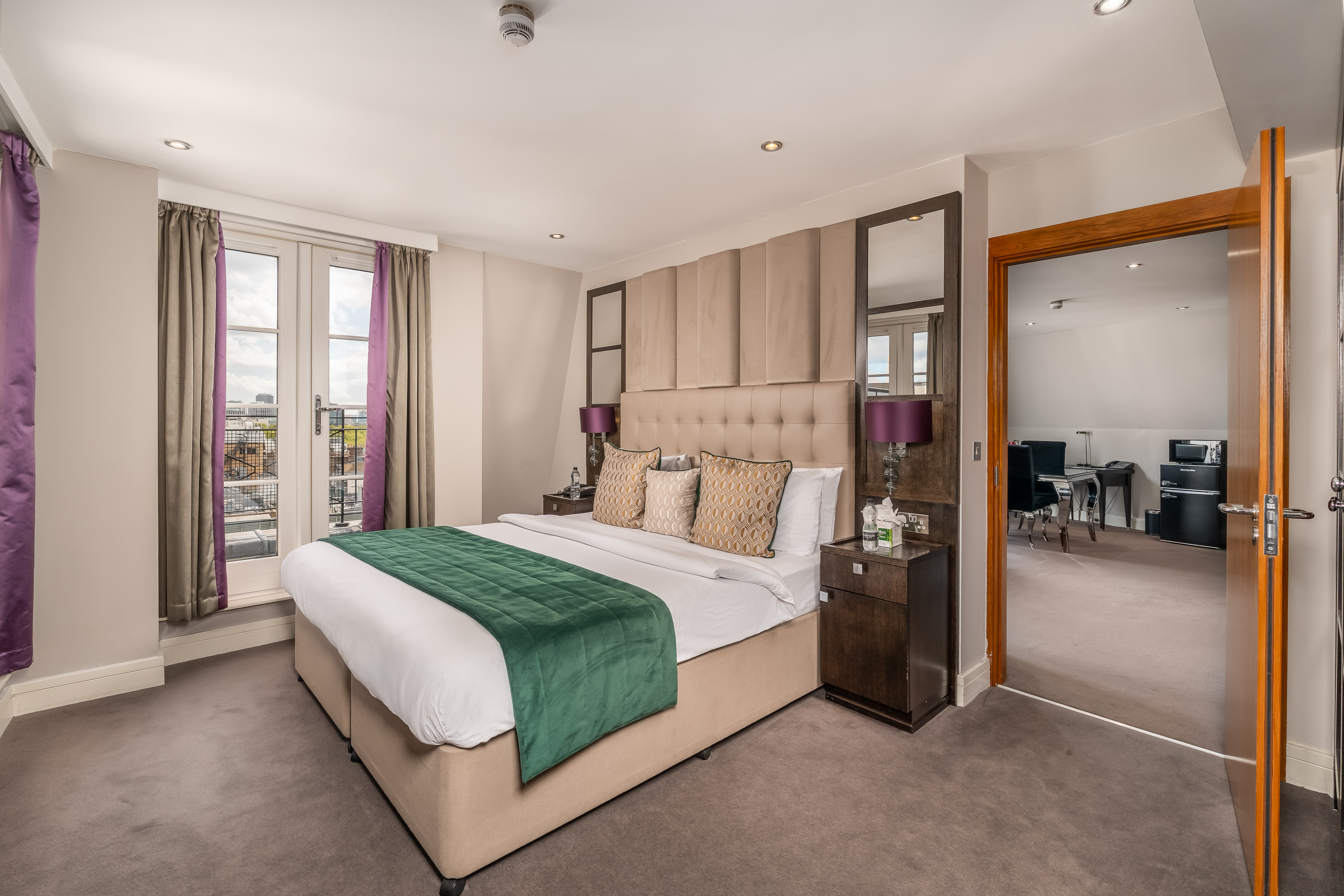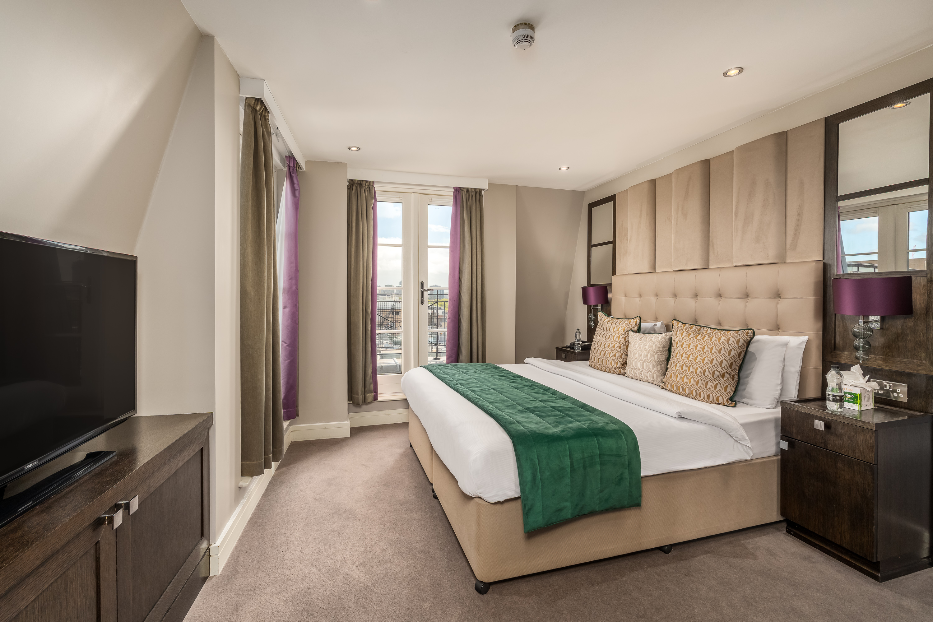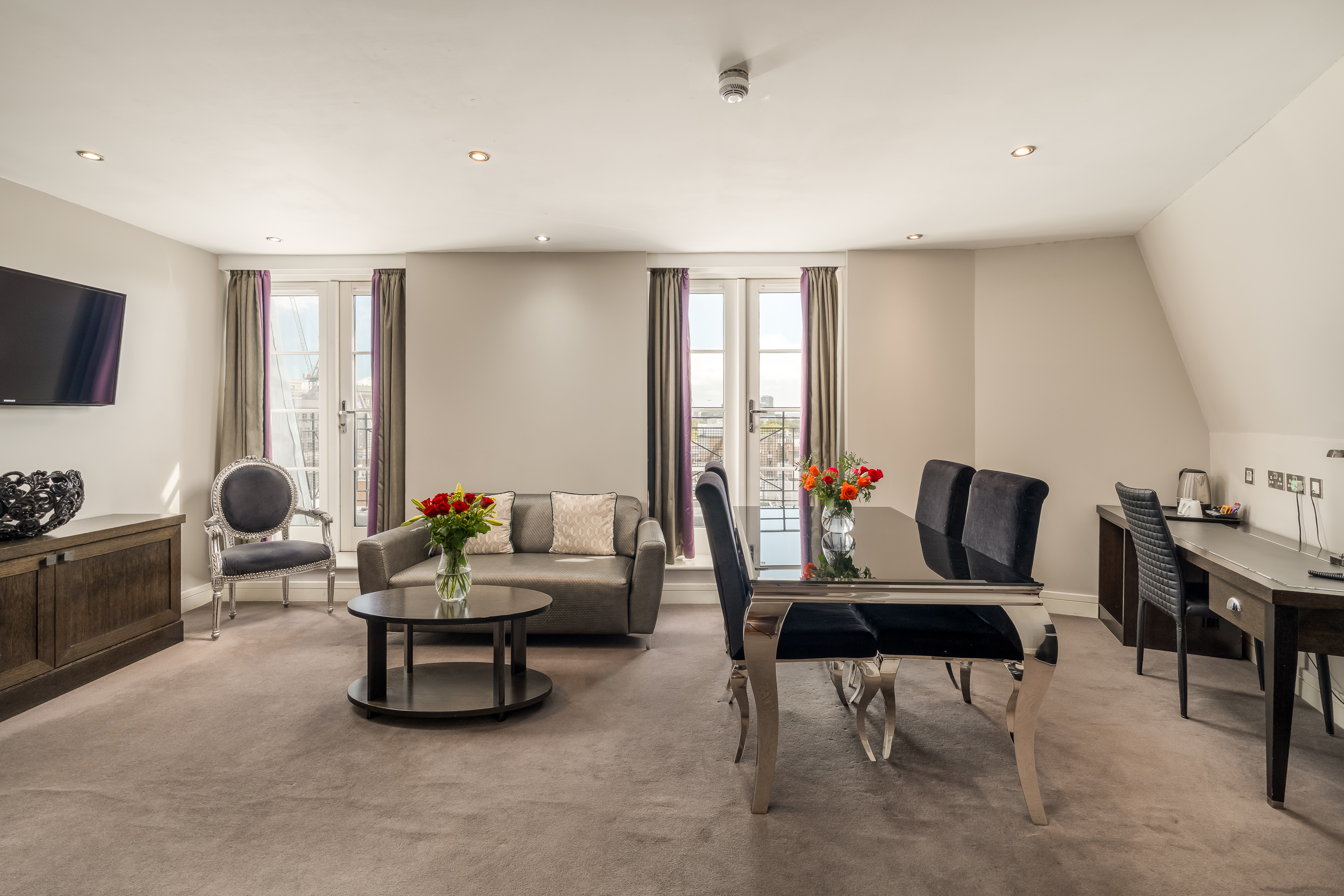 Now this is something very special, even for Mayfair. Our newest suite, on the very top of the hotel with wonderful views of London. This is a unique, light and airy space where the lounge and dining room lead into a generous sized east facing bedroom. The large bathroom features bathtub, walk in shower and bidet. There is also a separate shower room opening off the suite hallway. This beautiful room also offers the possibility of a link to a further rooms for those requiring additional nearby accommodation for family, friends or colleagues. Perfect for private meetings, VIP events or visitors or to make a special occasion truly unique.